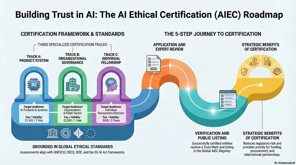 | Track A AI Product / System | AI developers, startups, tech firms | $1,500 | 1 year | Certification Badge, Assessment Report, AIEC Registry listing |